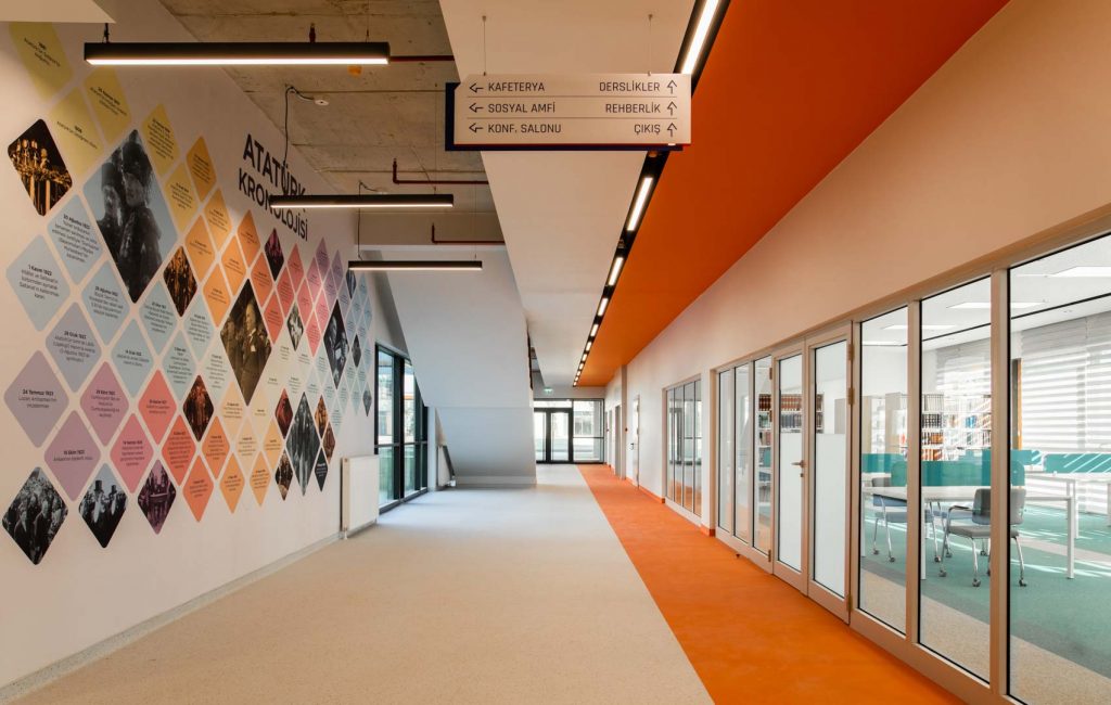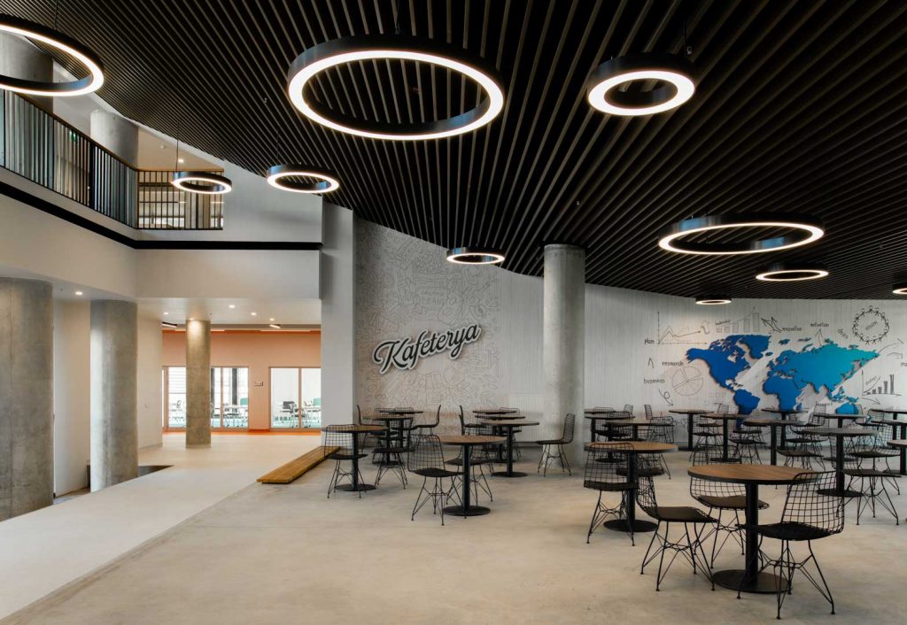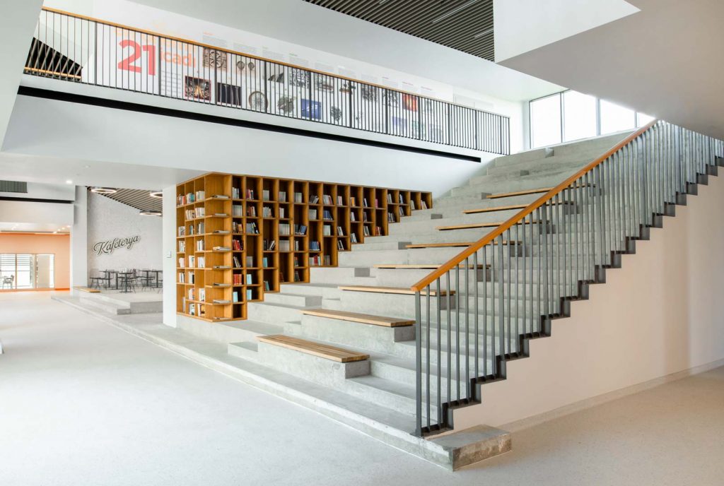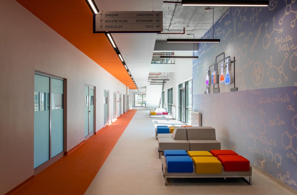 Standing out with its dazzling architectural texture and contemporary design approach, this high school is an educational space designed to inspire and prepare students for the future. Every corner was designed to offer students an atmosphere full of knowledge and an aesthetic that supports learning.