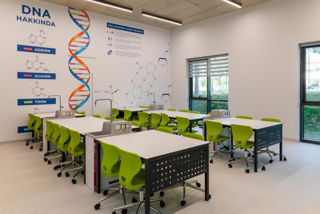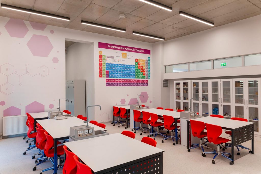 The school’s educational blocks have an organisation aimed at increasing student interaction, where classrooms are equipped with modern technology. Each classroom is equipped with interactive whiteboards, computers and other educational tools. Large windows with plenty of natural light provide students with the opportunity to learn in a relaxing environment.